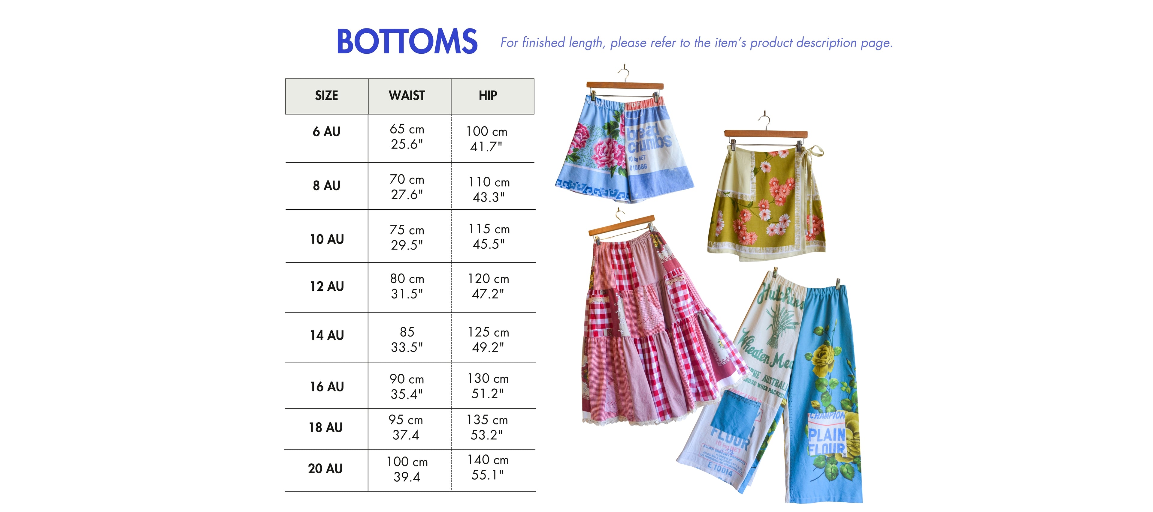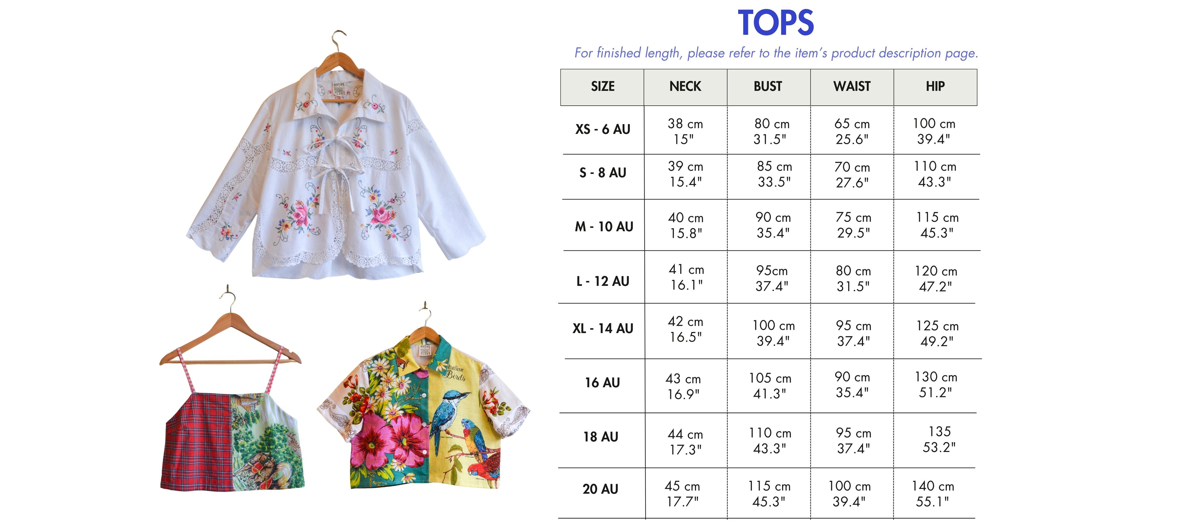 Our sizes follow standard Australian sizing. Please note that each item includes its own specific measurements in the product description. If you’re between sizes, we recommend sizing up for a little extra ease. If you need a hand choosing the right fit, feel free to reach out via the contact button below.