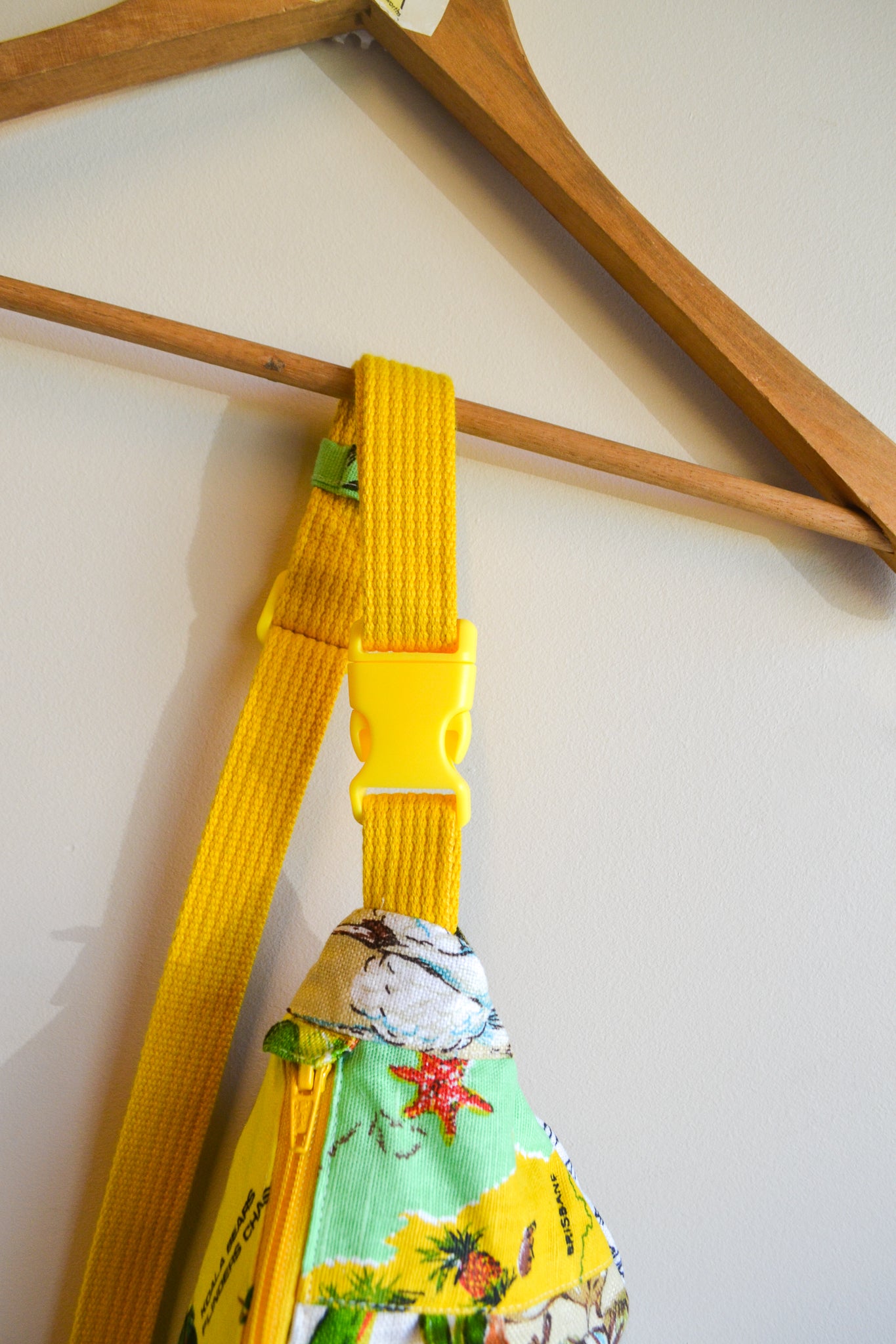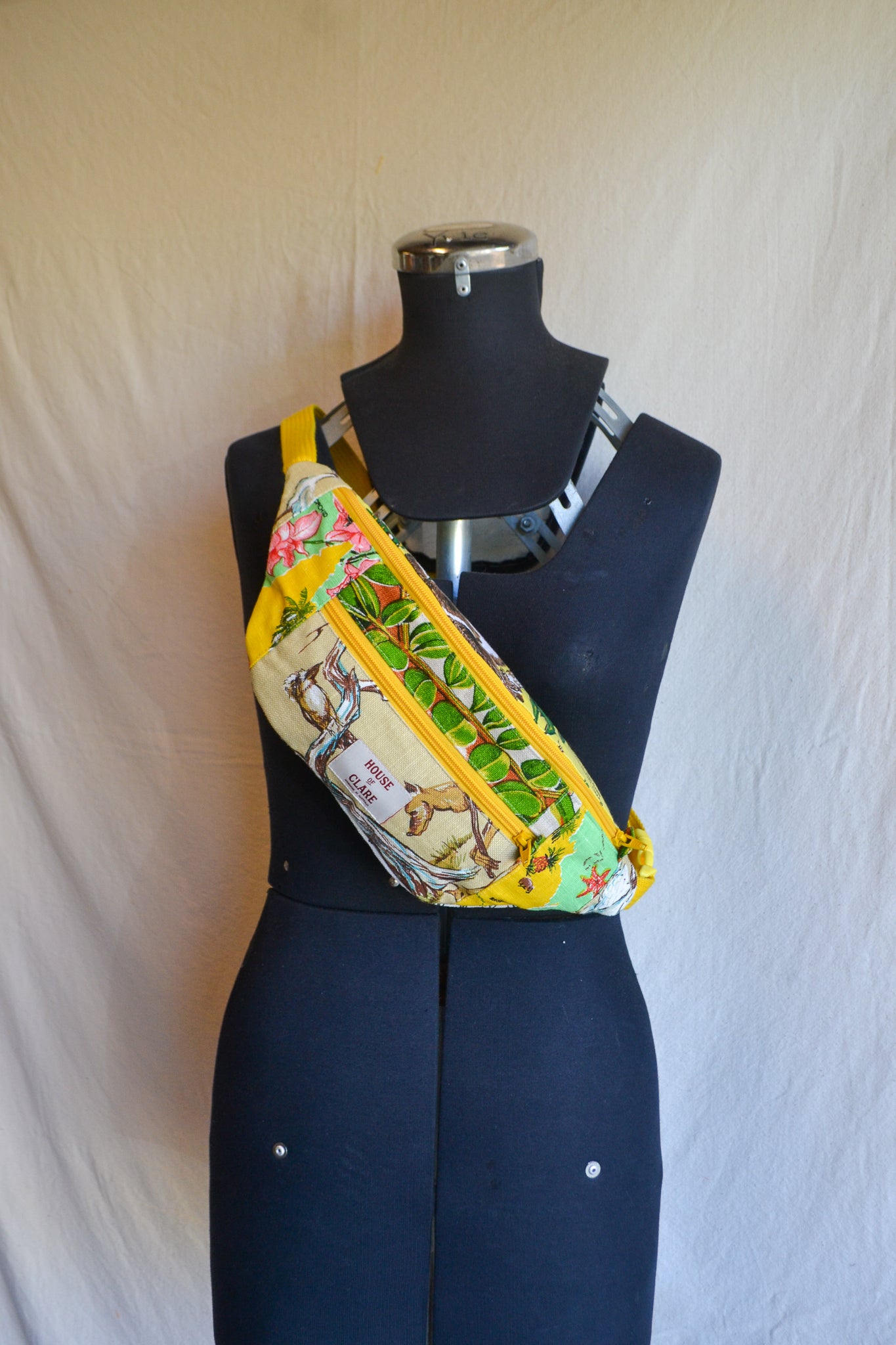 Handmade Coastal bum bag made from off-cuts. This one-of-a-kind piece is a playful accessory designed to carry your essentials. Made in a small batch of five. Perfect for markets, travel or daily errands. Each bag is unique as you are, no 2 are the same.
