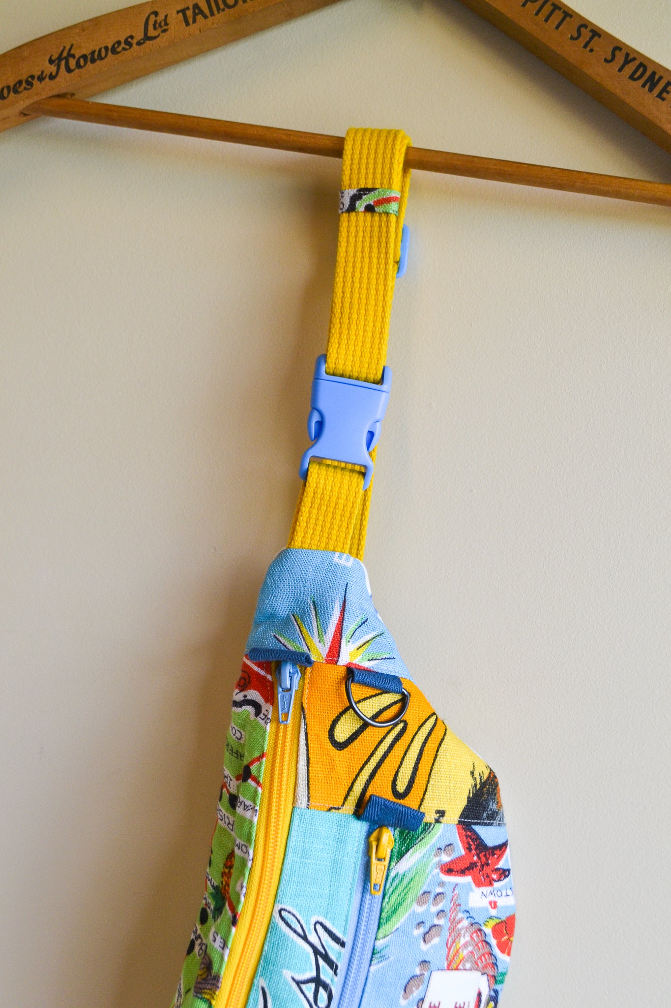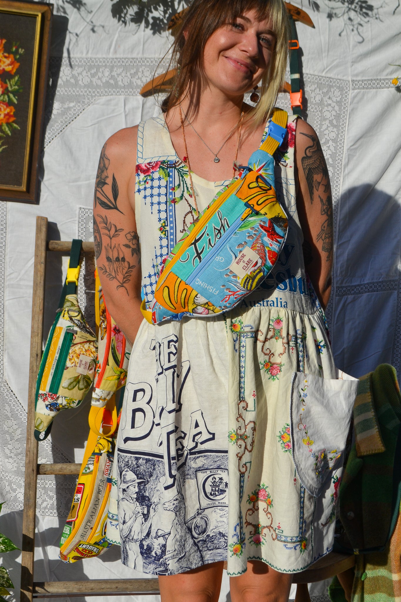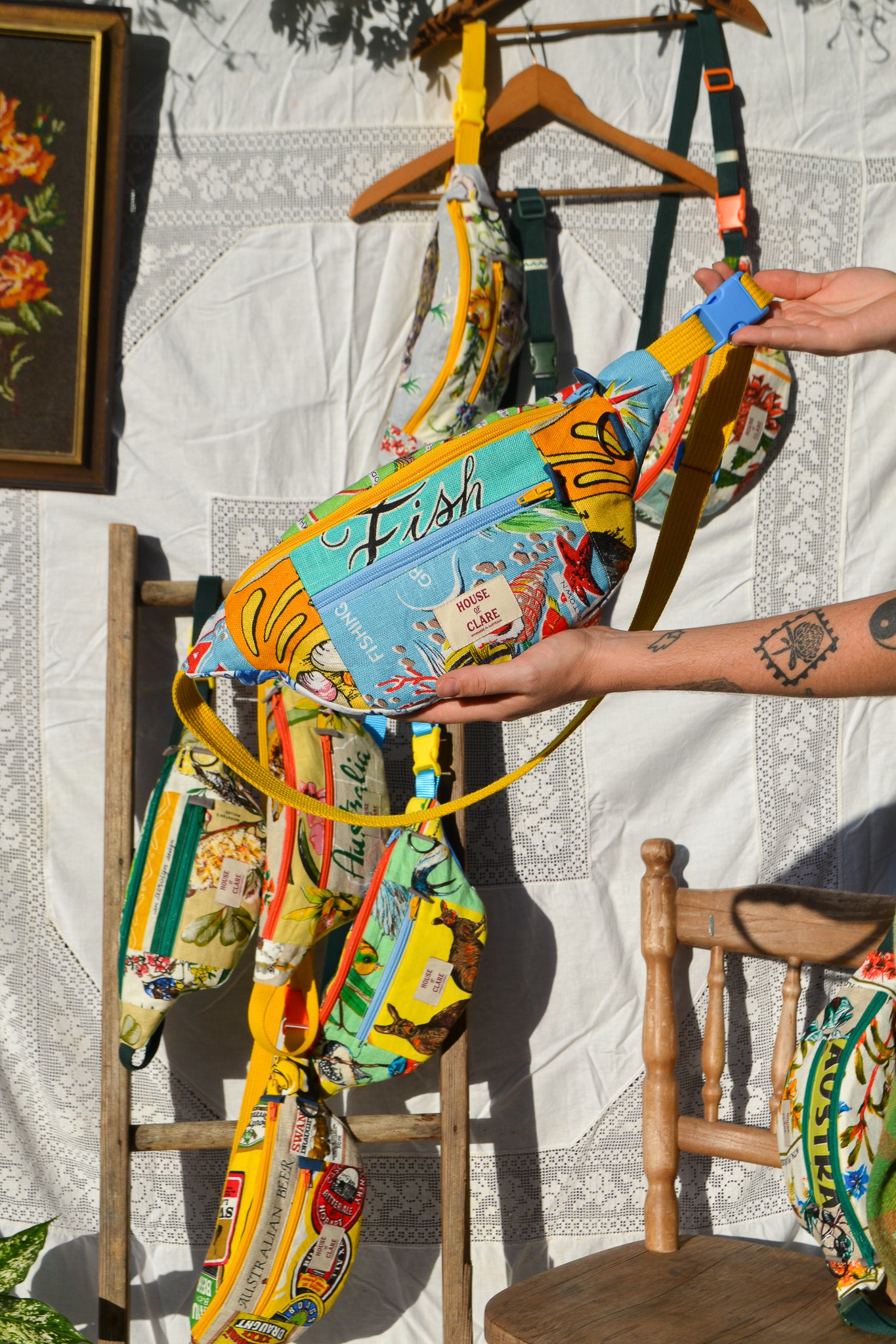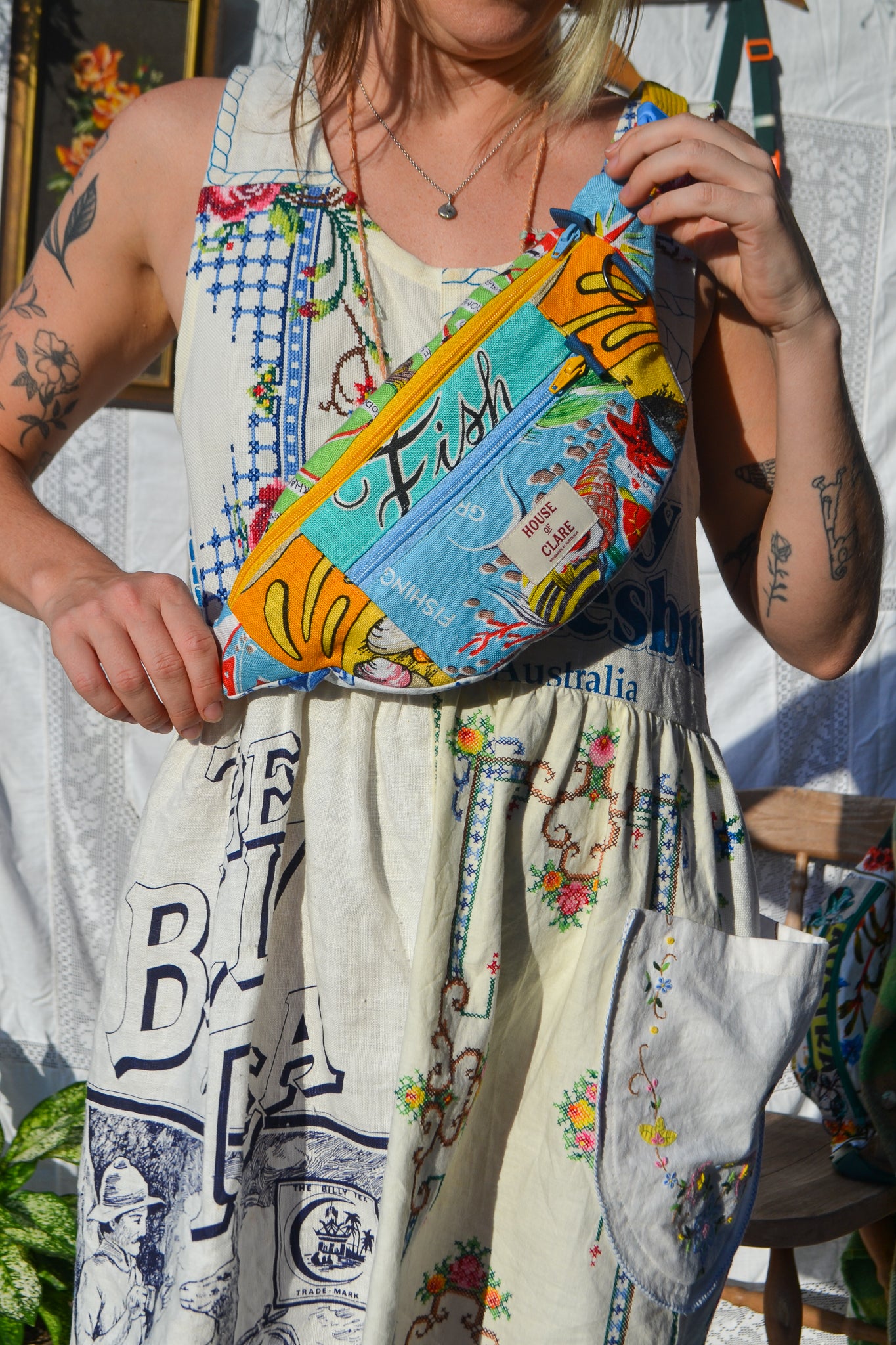 Handcrafted Fish bum bag is cut from cotton and linen off-cuts. Built with 2 sturdy zippers and adjustable strap so you can tailor to your own fit.