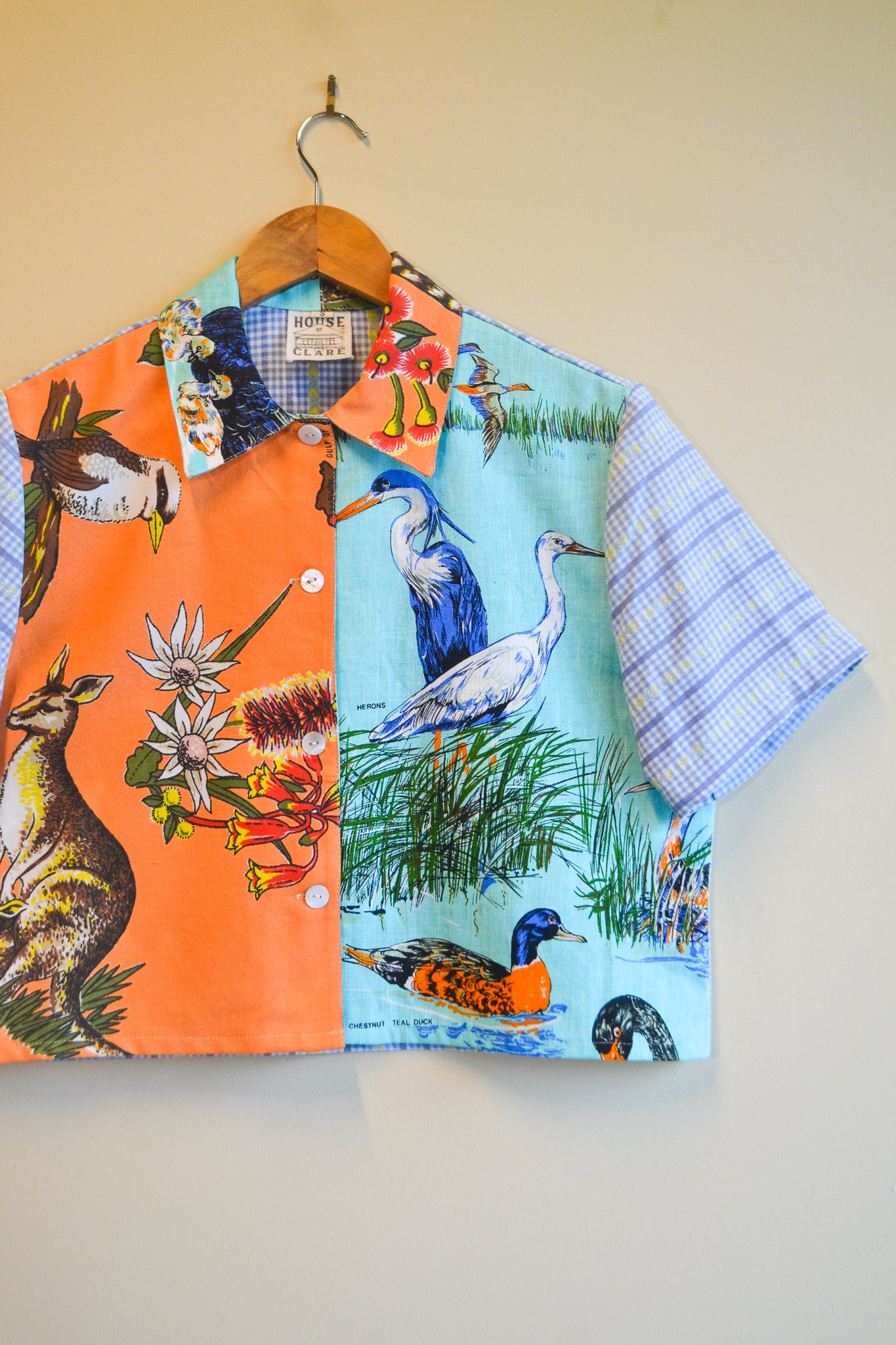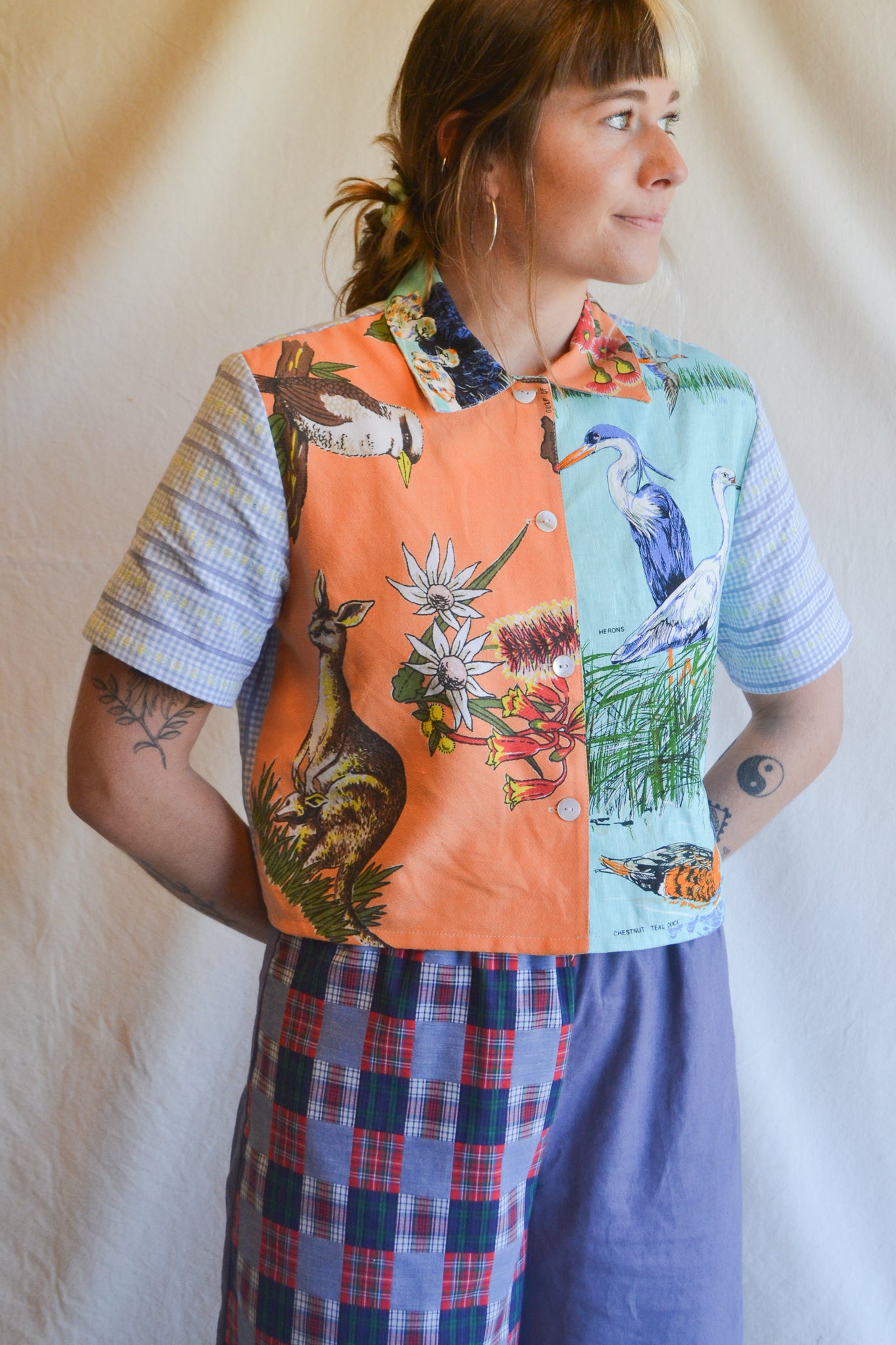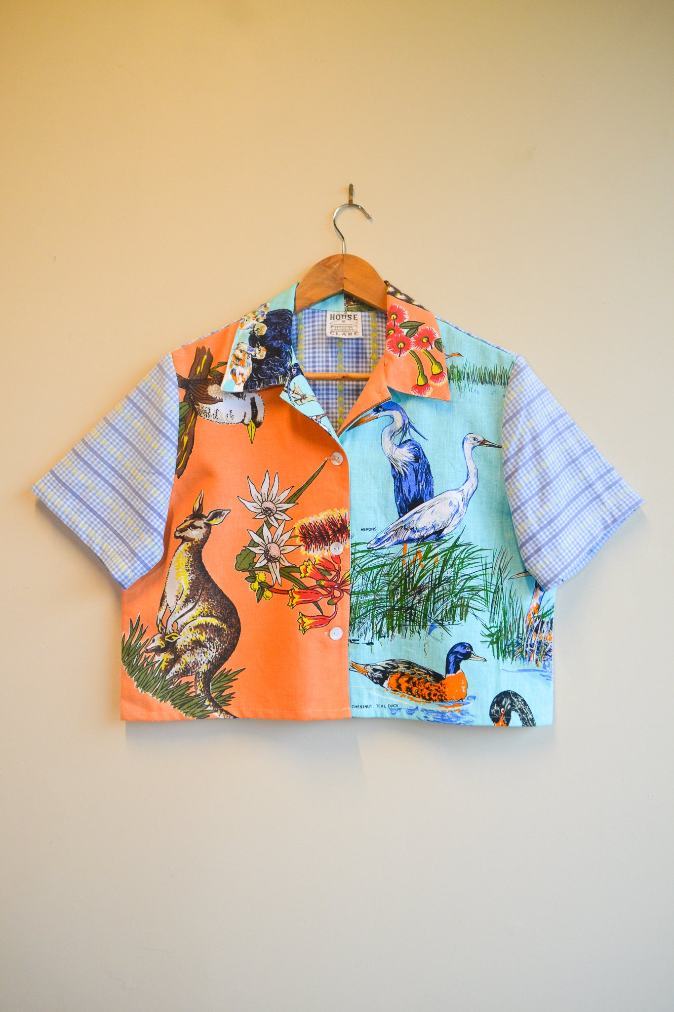 Our Bird Watcher Button-Up Shirt is a one-of-a-kind, wearable art piece, crafted from a beautifully preserved vintage embroidery table cloth. With a relaxed fit that finishes at the hip, it offers a flattering and timeless silhouette that seamlessly transitions from season to season. A statement piece that is as unique as you are.