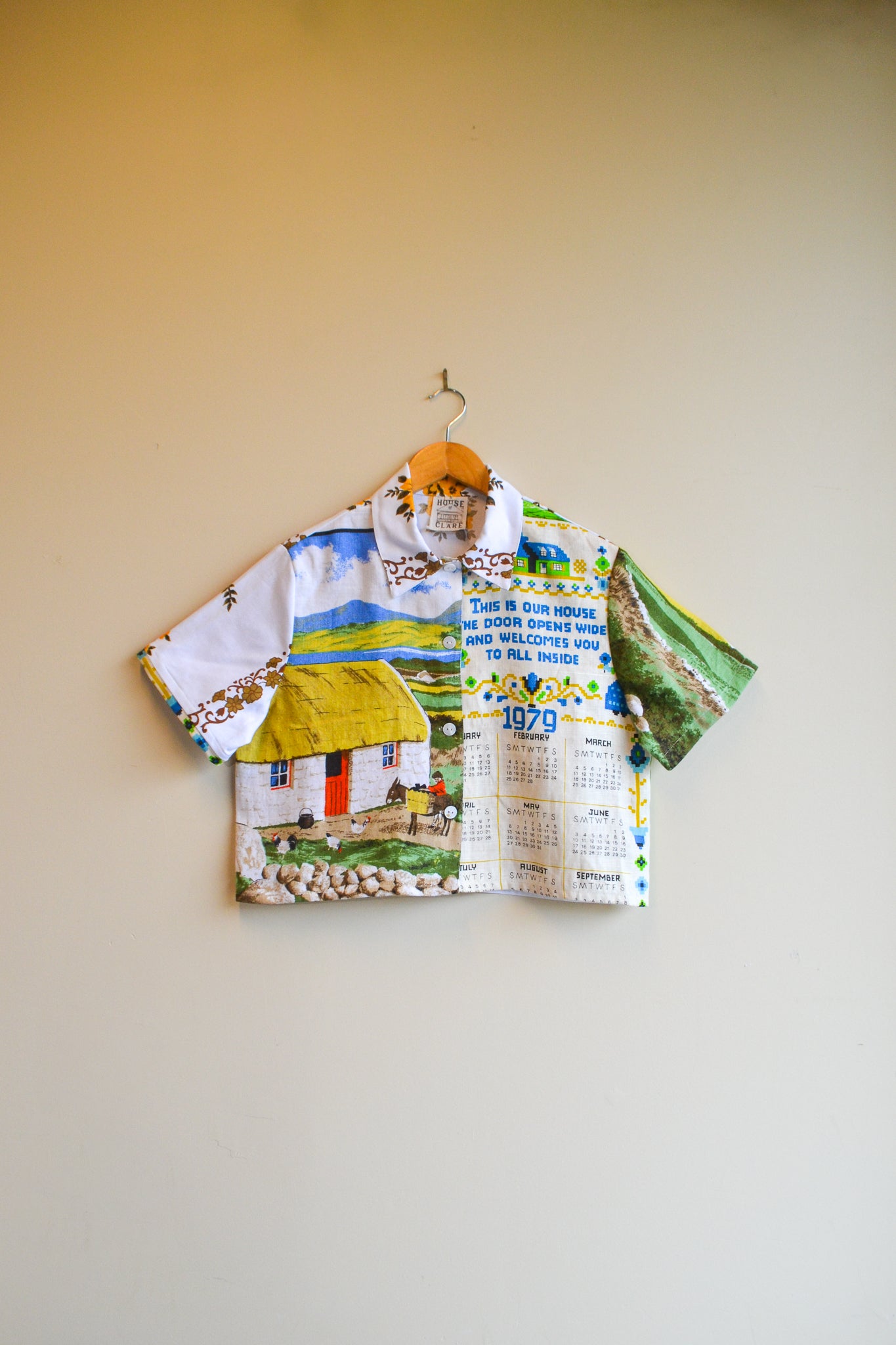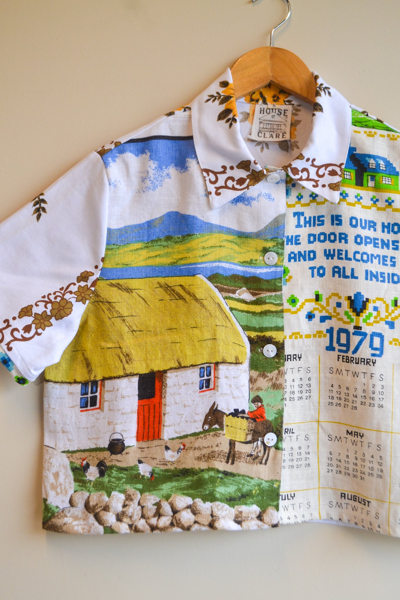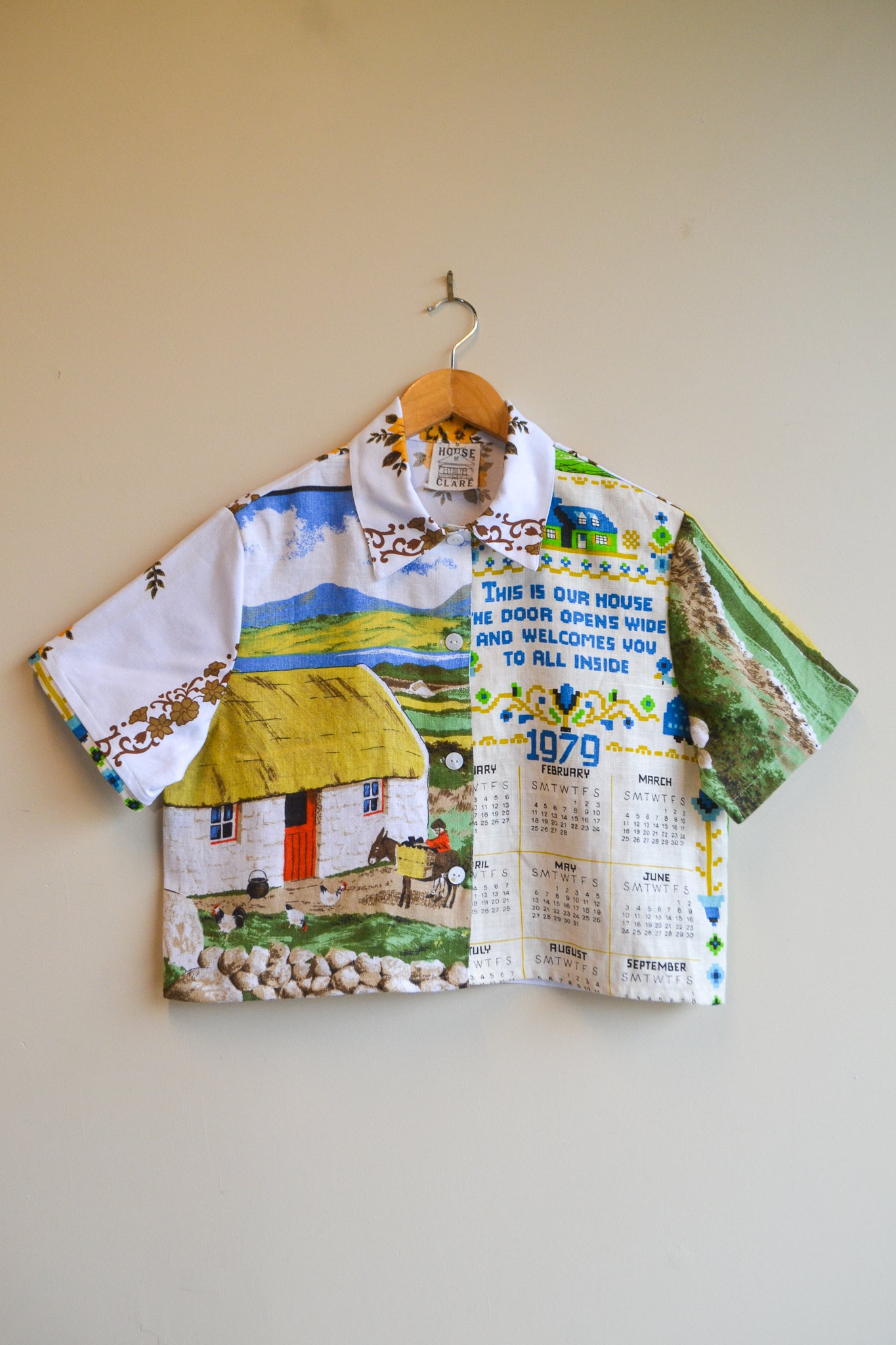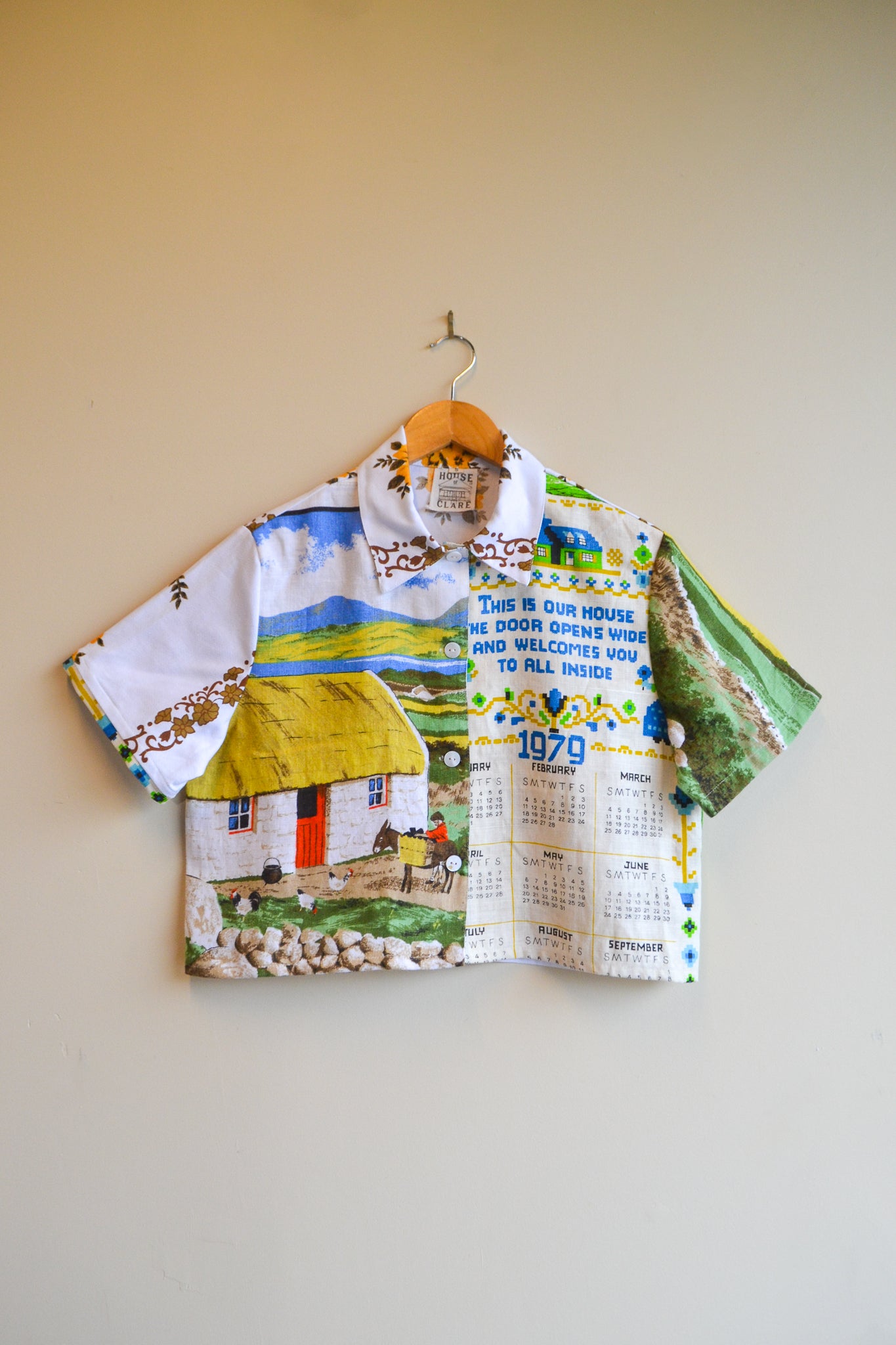 Our Cottage Button-Up Shirt is a one-of-a-kind, wearable art piece. Crafted from beautifully preserved vintage linen tea towels and vintage cotton table cloth. With a relaxed fit that finishes at the hip, it offers a flattering and timeless silhouette.