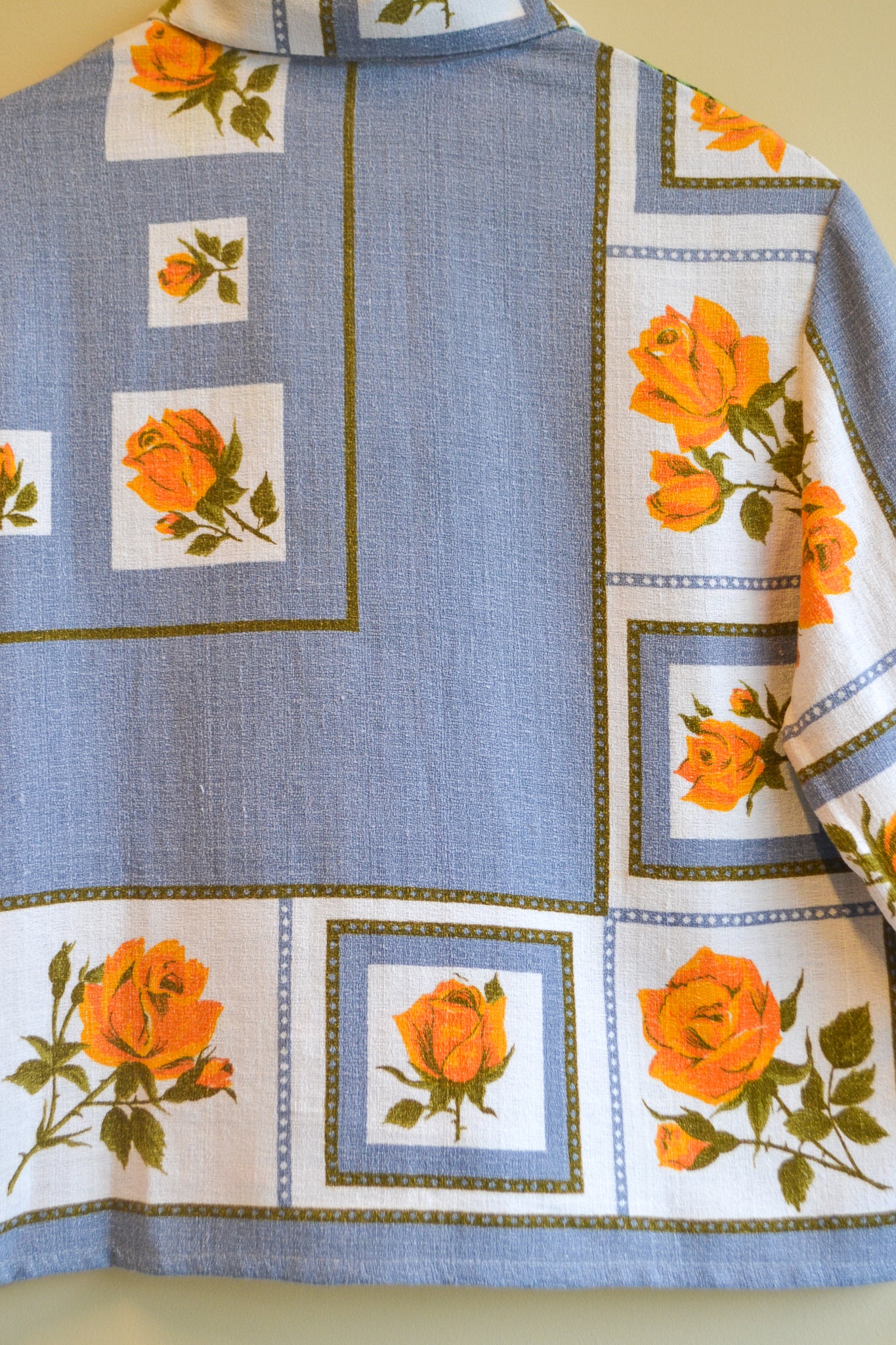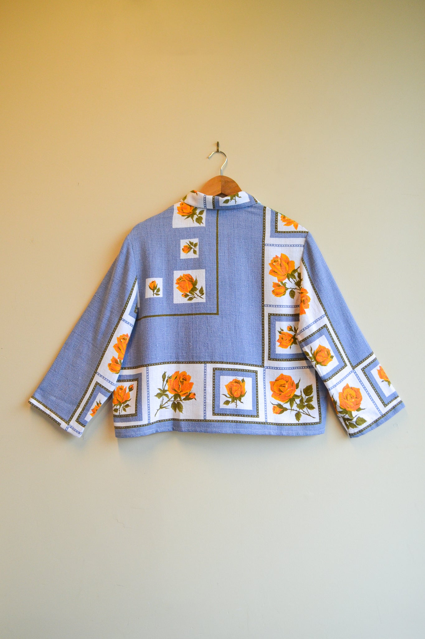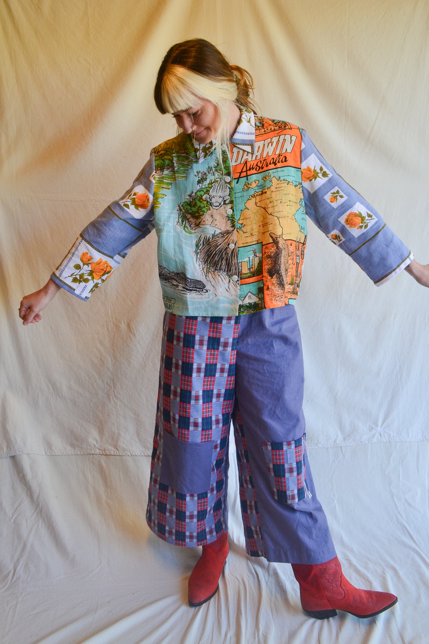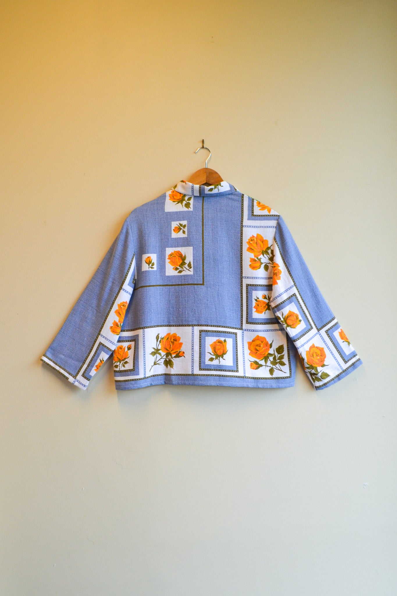 This one-of-a-kind beauty 'Croc Button Up' is handcrafted from a beautifully preserved vintage Tea towels and cotton Table Cloth. A true one of a kind piece, with 5 white mother of pearl buttons at centre front, convertible collar letting you wear open or closed and finishing at hip for easy pairing.