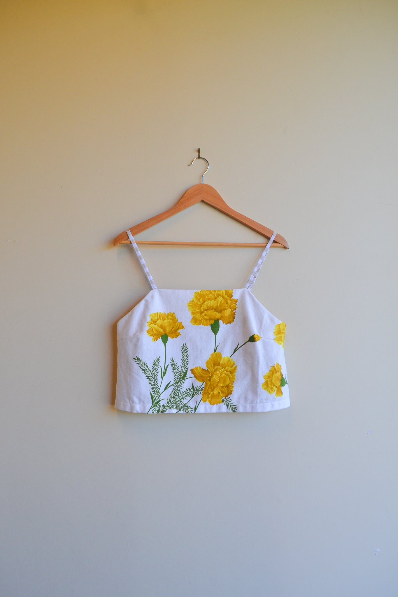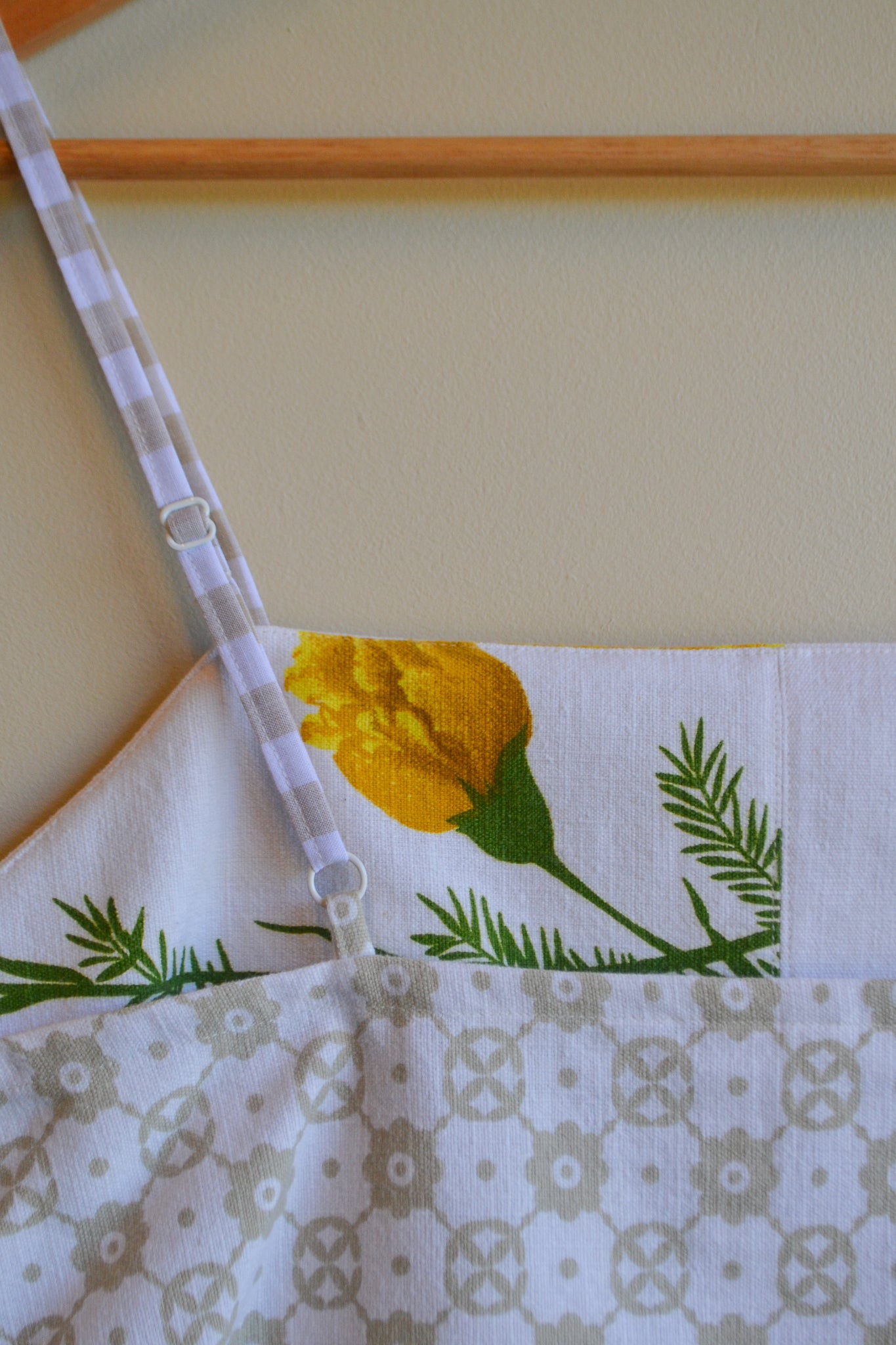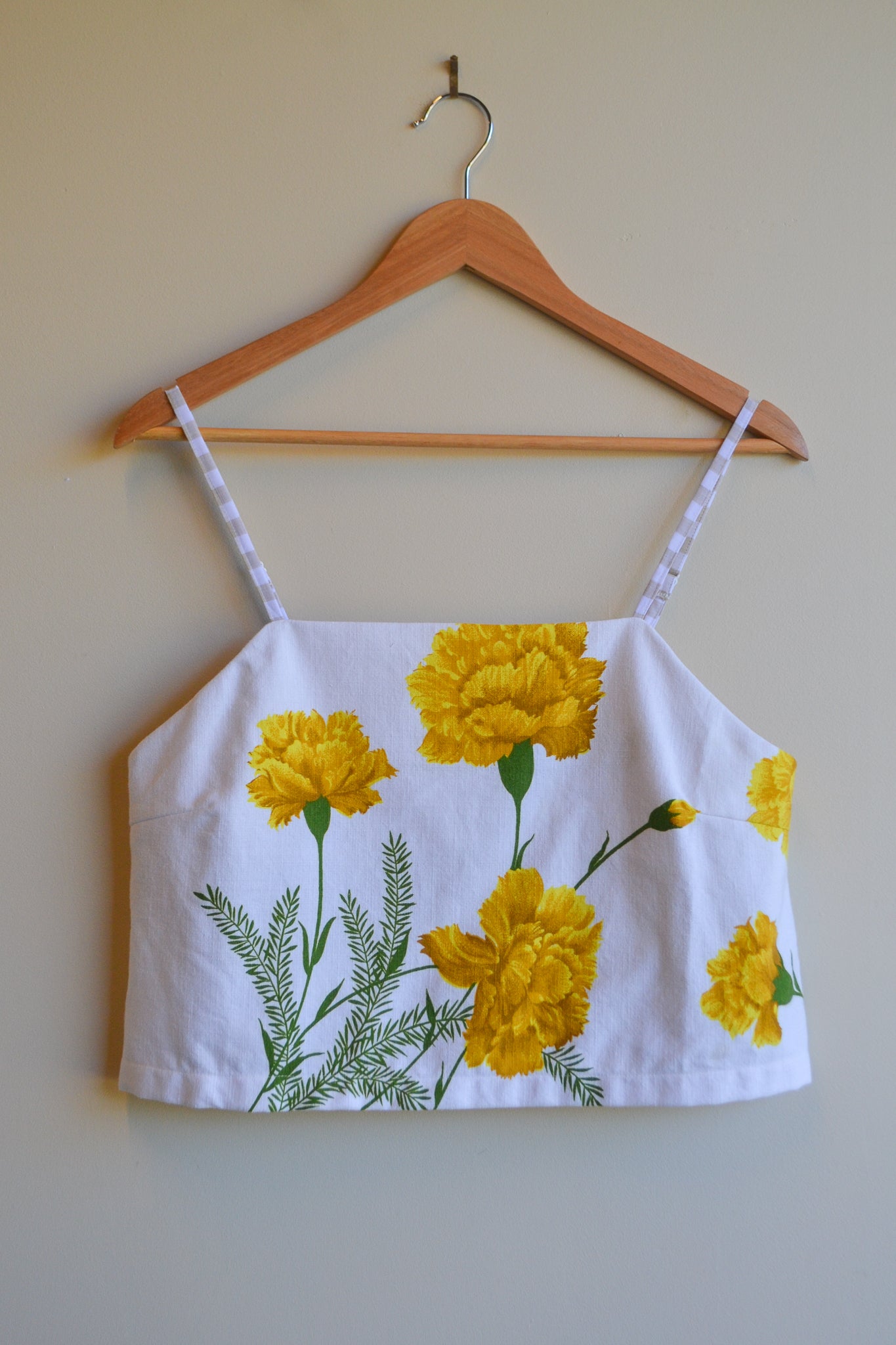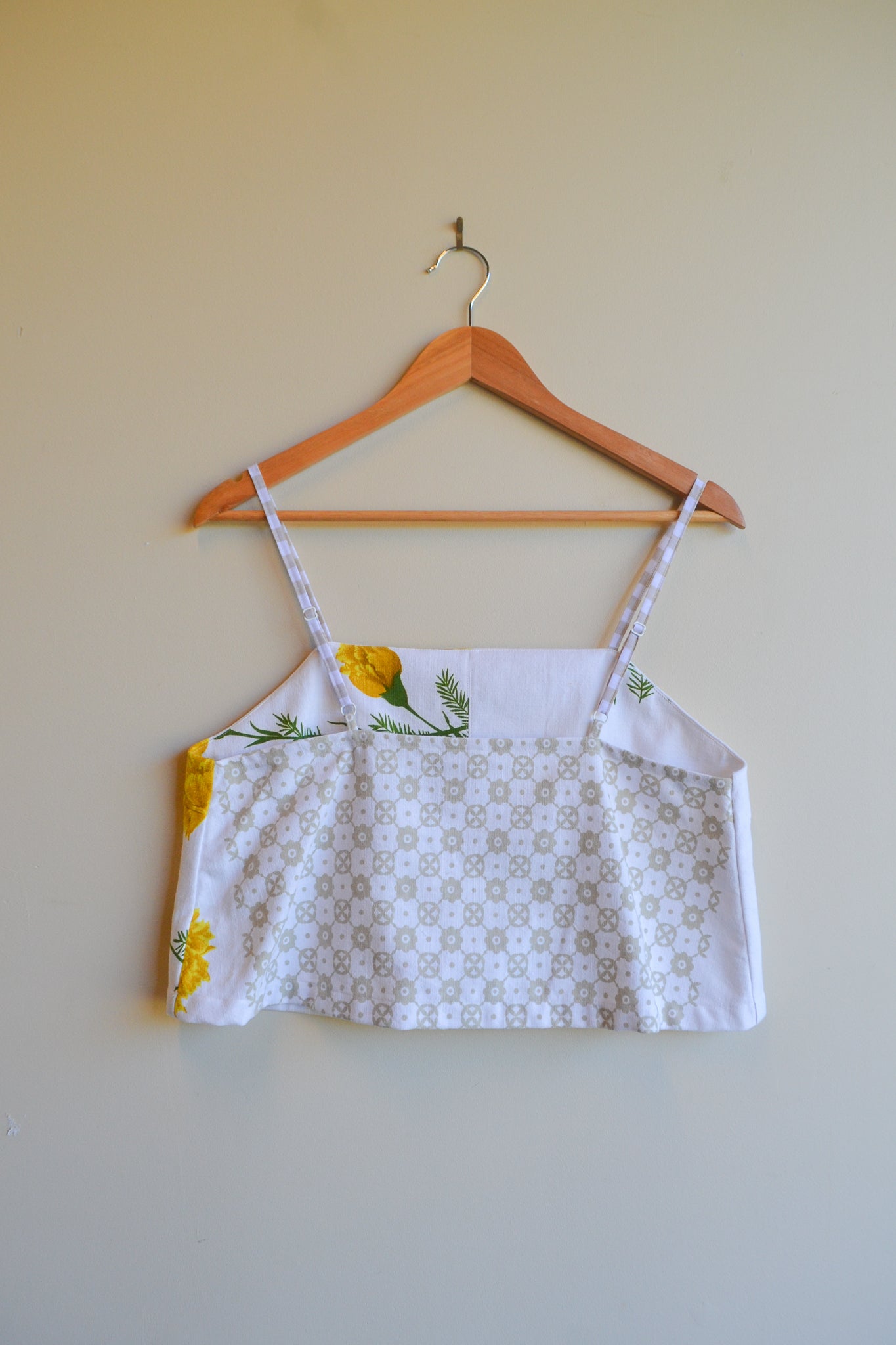 Our Bloon Cami Top is handcrafted from reclaimed vintage tea towel and embroidery table cloth. With adjustable straps you can tailor to your own fit. This Cami is a true one-of-a-kind top with outstanding craftsmanship.