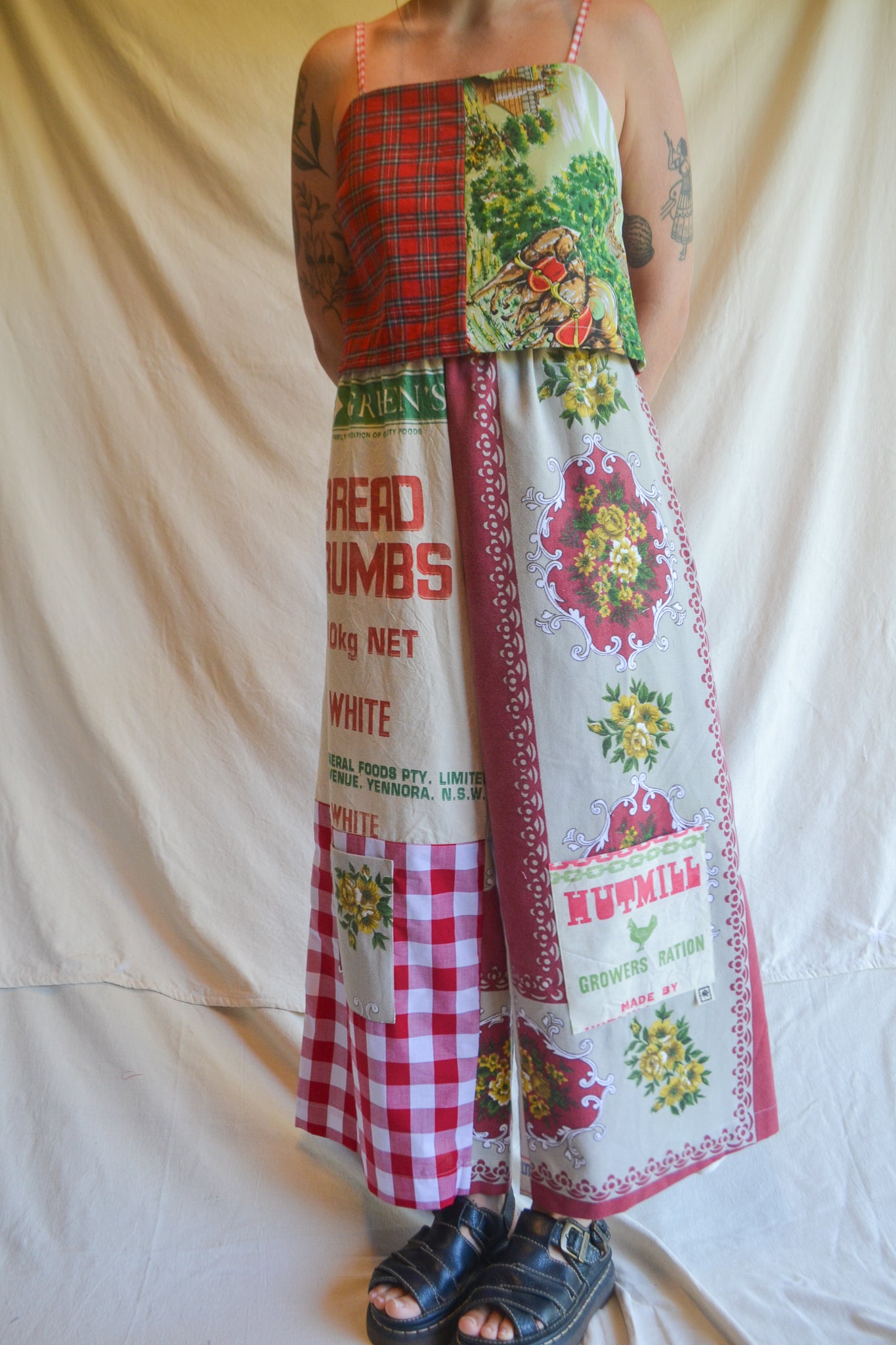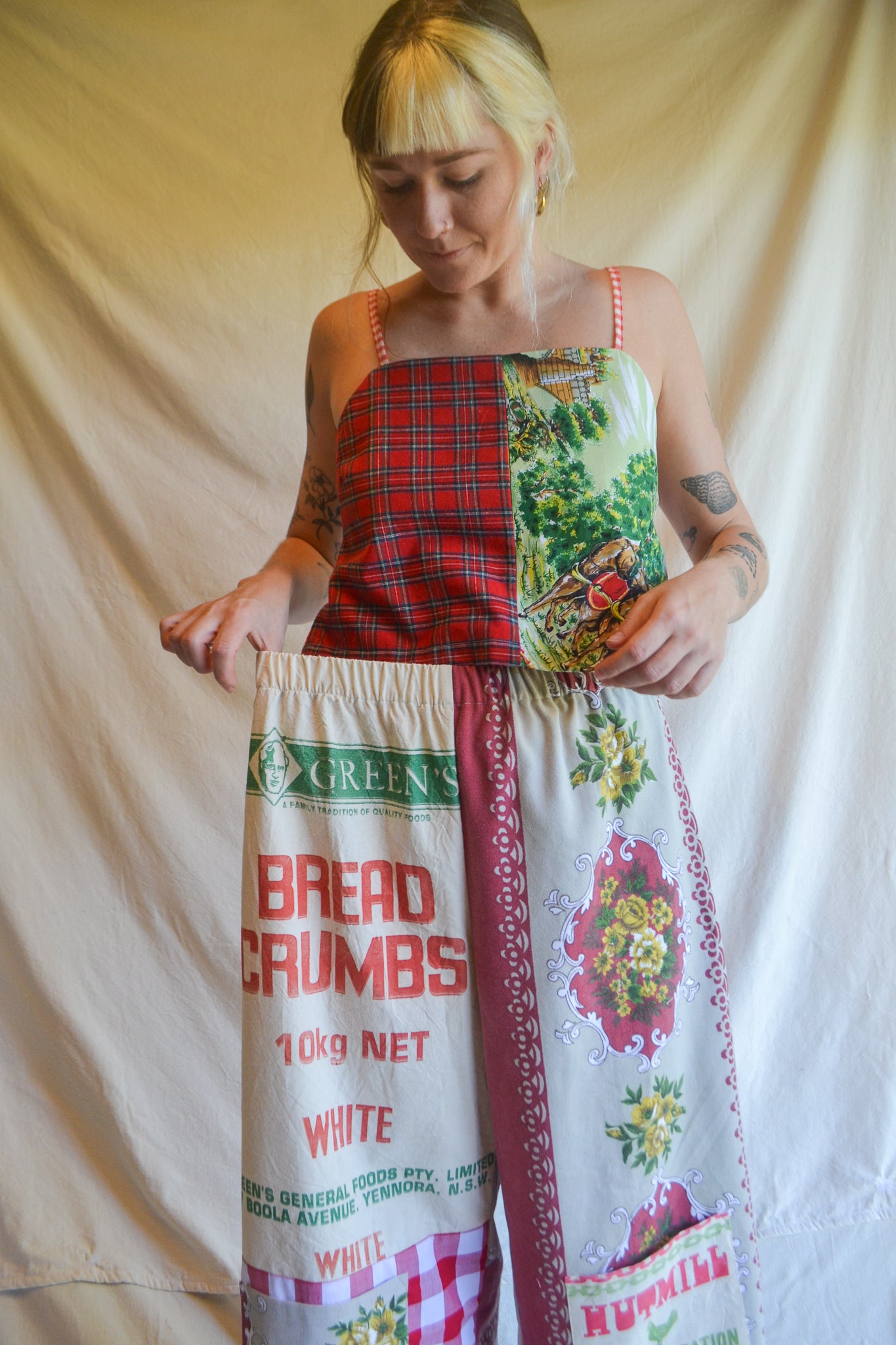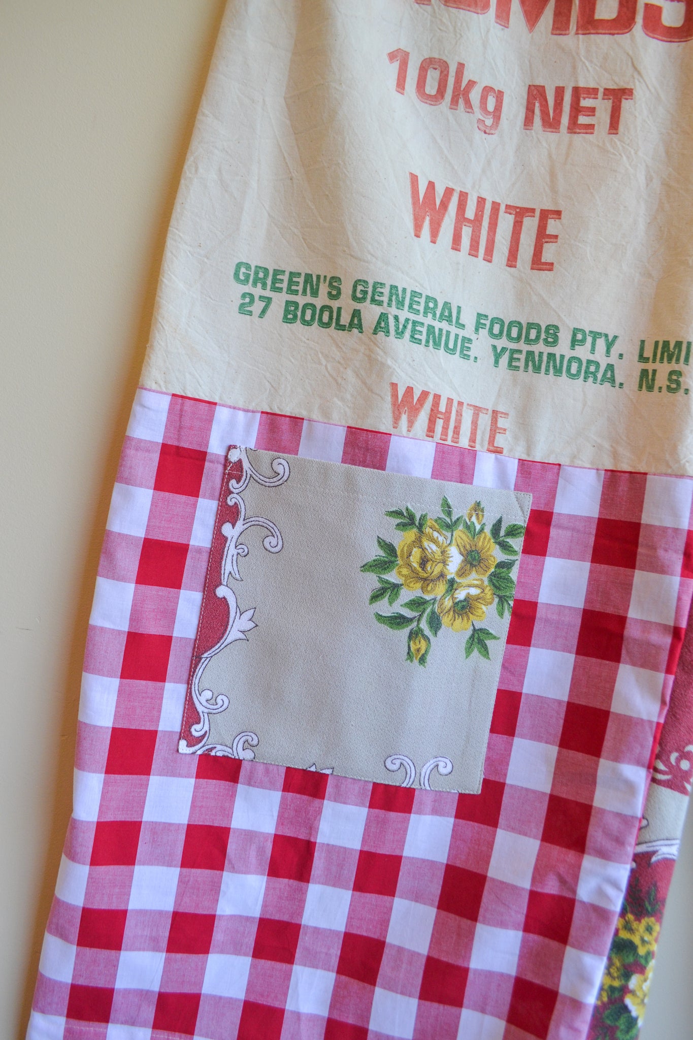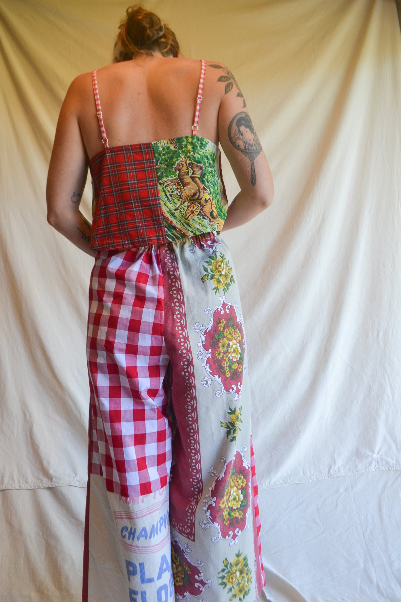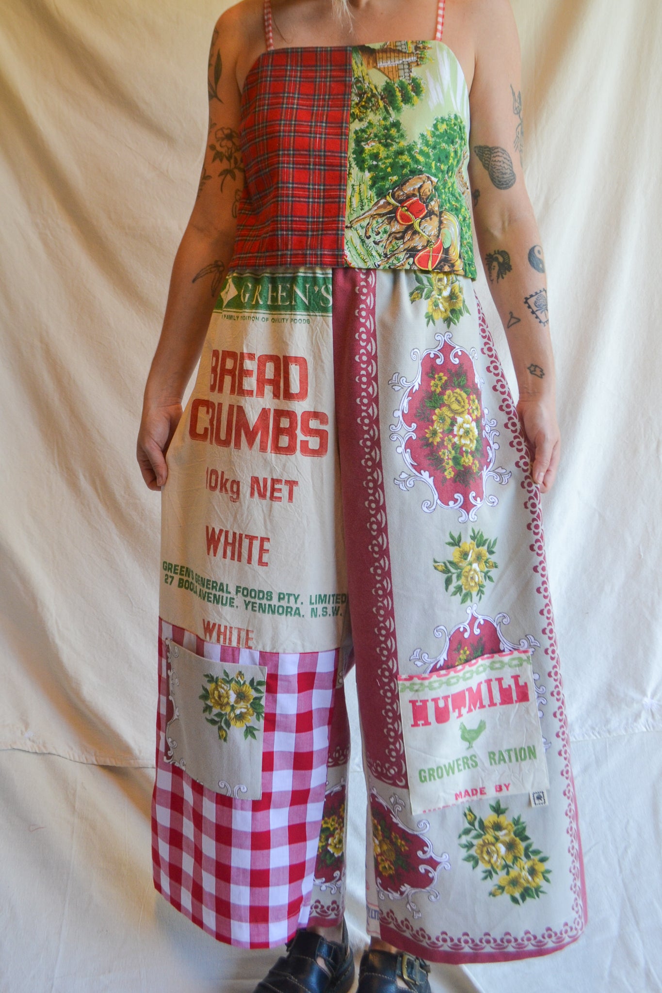 Our Growers, wide leg, high waist patch pants are a true one-of-a-kind statement piece. With our original playful design, A-line silhouette and patch pockets these pants provide ease and comfort. Crafted from vintage fabric and heritage flour sacks.