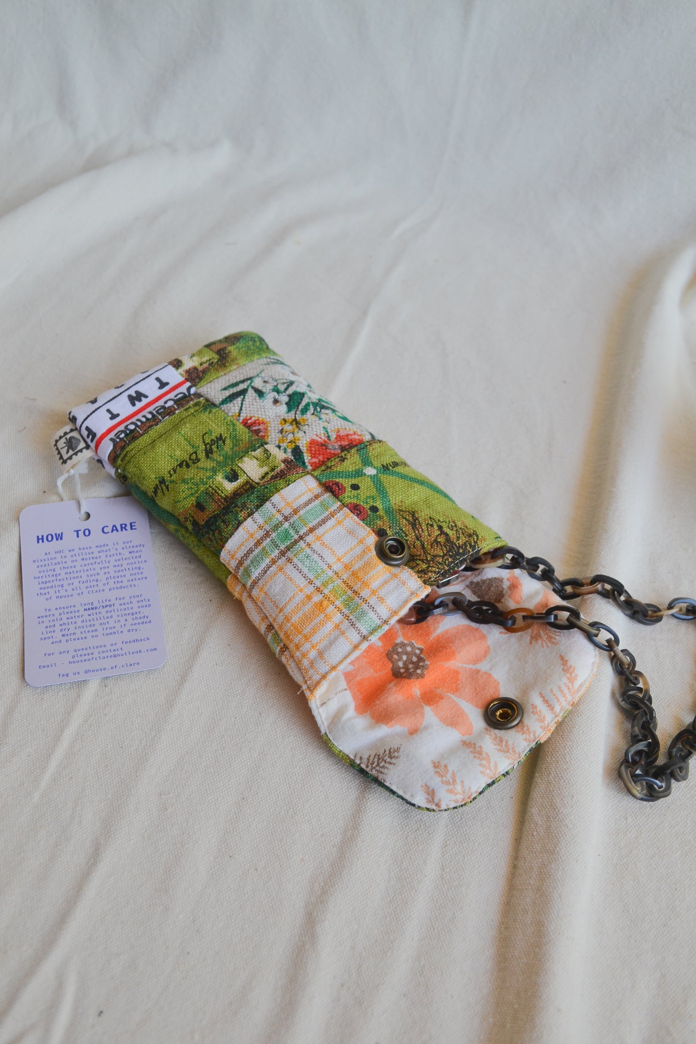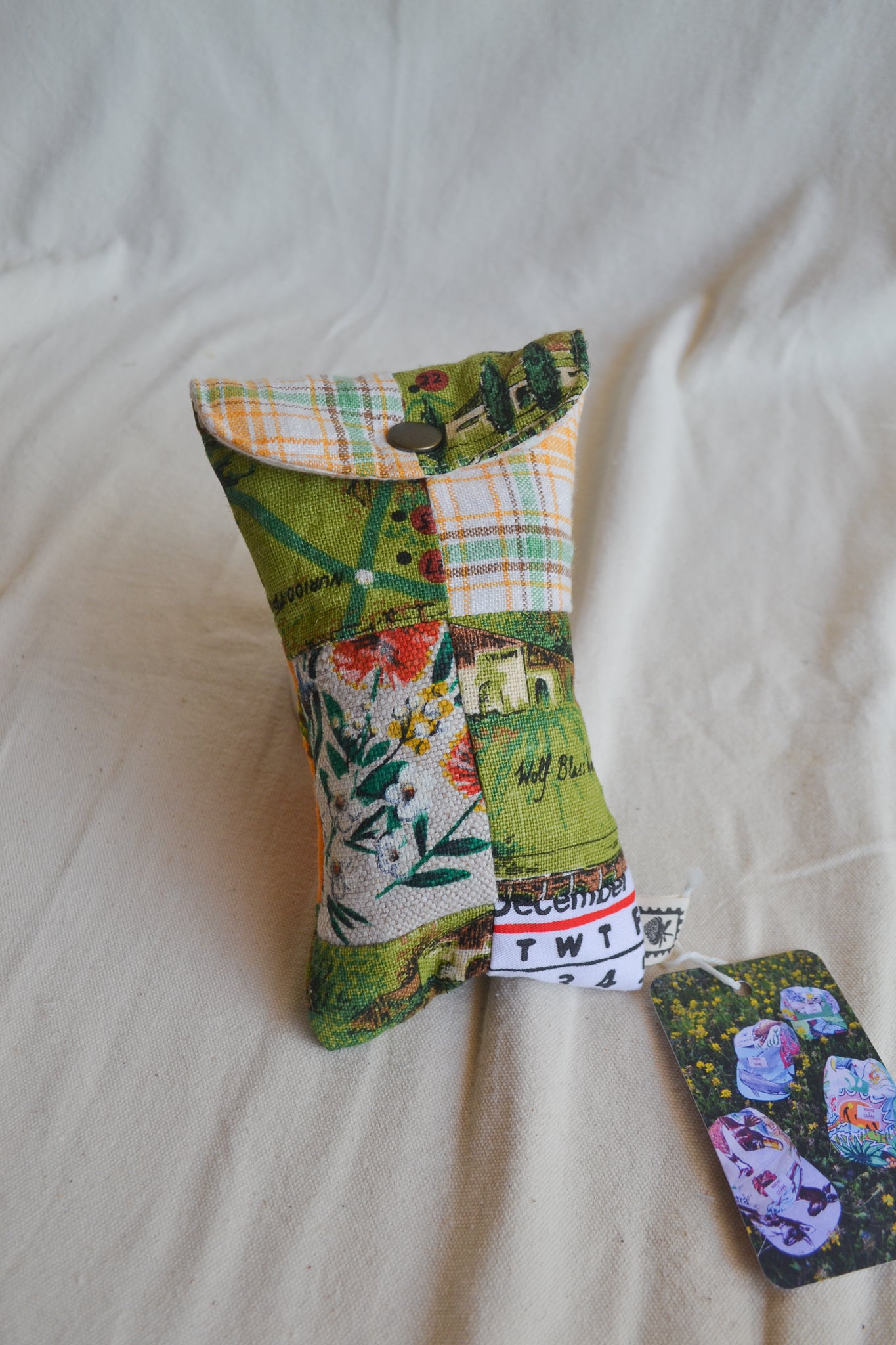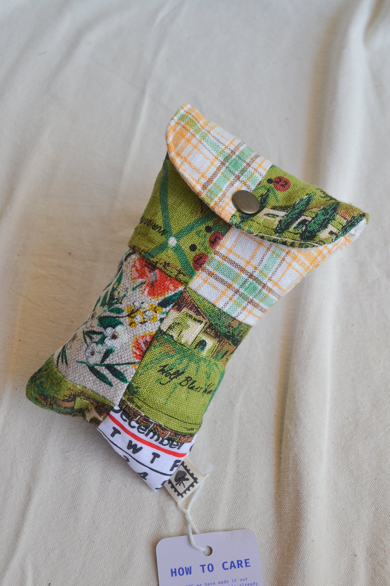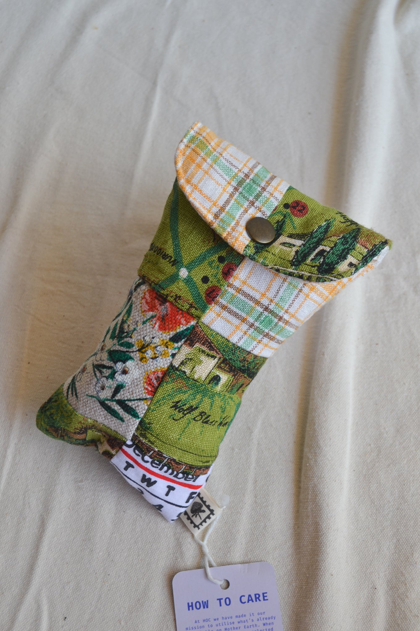 Introducing our one-of-a-kind multi-use pouch. Made from reclaimed off-cuts and cotton lining. Designed with a padded protective layer to ensures your precious items are safe and snug. The easy access flap with press stub button closure means you can quickly grab what ever you need without any fuss. Perfect for your on-the-go life style, this mini pouch is versatile, stylish and eco friendly.